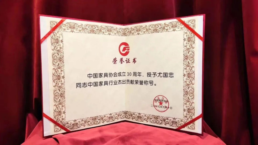 中國家具行業杰出貢獻榮譽稱號